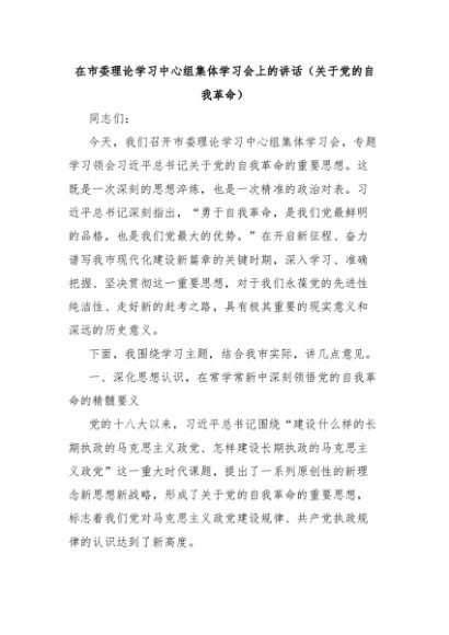 【七哥公文】2025年:在市委理论学习中心组集体学习会上的讲话(关于党的自我革命)+更多免费公文+VX:QiGeGongWen2024