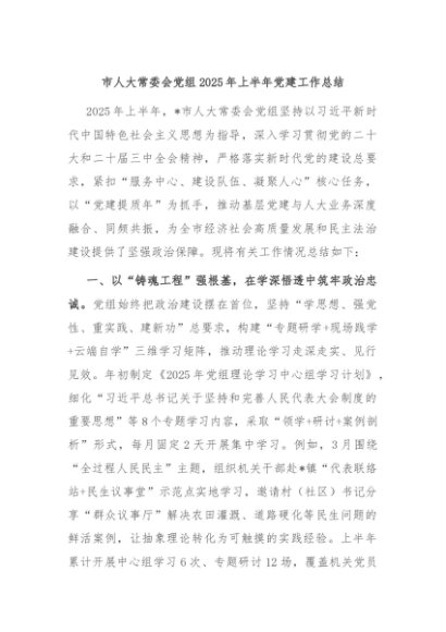 / 【七哥公文】2025年:市人大常委会党组2025年上半年党建工作总结+更多免费公文+VX:QiGeGongWen2024