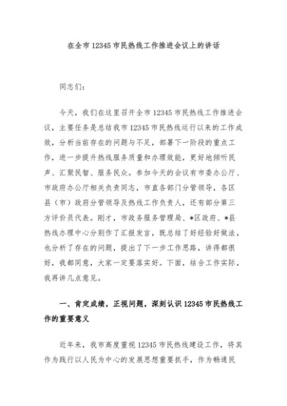 / 【七哥公文】2025年:在全市12345市民热线工作推进会议上的讲话+更多免费公文+VX:QiGeGongWen2024