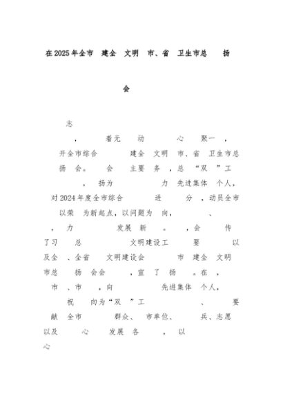 【七哥公文】2025年:在2025年全市创建全国文明城市、省级卫生市总结表扬大会上的讲话+更多免费公文+VX:QiGeGongWen2024