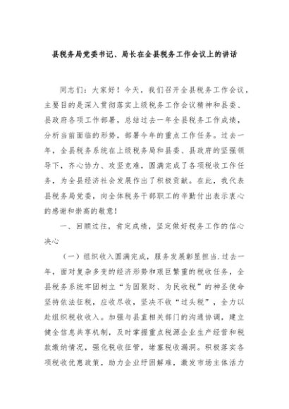 / 【七哥公文】2025年:县税务局党委书记、局长在全县税务工作会议上的讲话+更多免费公文+VX:QiGeGongWen2024