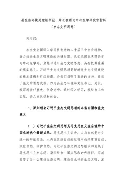 【七哥公文】2025年:县生态环境局党组书记、局长在理论中心组学习发言材料(生态文明思想)+更多免费公文+VX:QiGeGongWen2024
