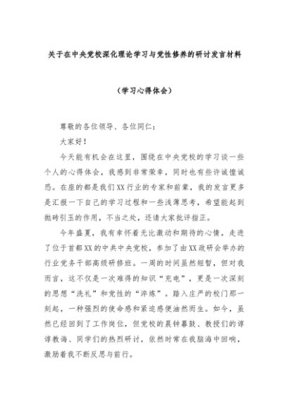 【七哥公文】2025年:关于在中央党校深化理论学习与党性修养的研讨发言材料(学习心得体会)+更多免费公文+VX:QiGeGongWen2024