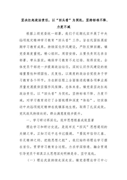 【七哥公文】2025年:坚决扛起政治责任,以“回头看”为契机,坚持标准不降、力度不减+更多免费公文+VX:QiGeGongWen2024