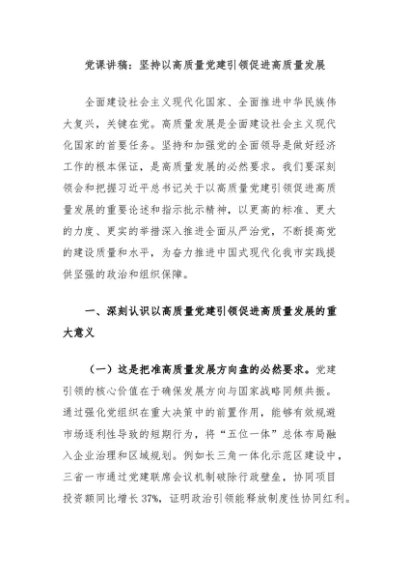 / 【七哥公文】2025年:党课讲稿:坚持以高质量党建引领促进高质量发展+更多免费公文+VX:QiGeGongWen2024