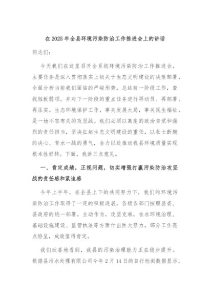 / 【七哥公文】2025年:在2025年全县环境污染防治工作推进会上的讲话+更多免费公文+VX:QiGeGongWen2024