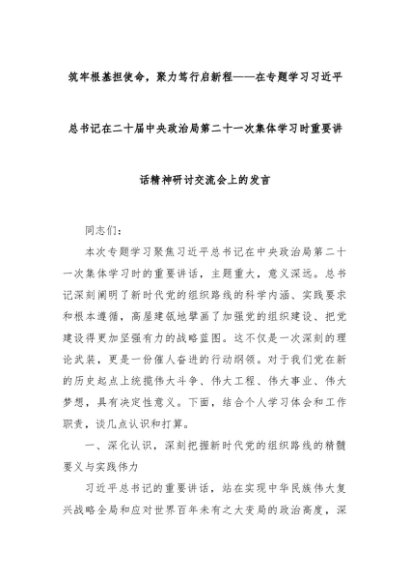 【七哥公文】2025年:筑牢根基担使命,聚力笃行启新程——在专题学习习近平总书记在二十届中央政治局第二十一次集体学习时重要讲话精神研讨交流会上的发言+更多免费公文+VX:QiGeGongWen2024