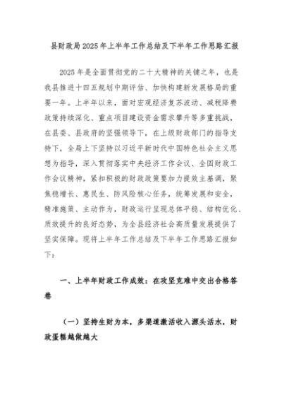 【七哥公文】2025年:县财政局2025年上半年工作总结及下半年工作思路汇报+更多免费公文+VX:QiGeGongWen2024