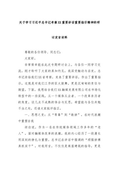 【七哥公文】2025年:关于学习习近平总书记考察XX重要讲话重要指示精神的研讨发言材料+更多免费公文+VX:QiGeGongWen2024