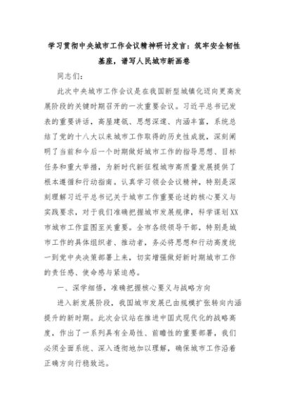 【七哥公文】2025年:学习贯彻中央城市工作会议精神研讨发言:筑牢安全韧性基座,谱写人民城市新画卷+更多免费公文+VX:QiGeGongWen2024