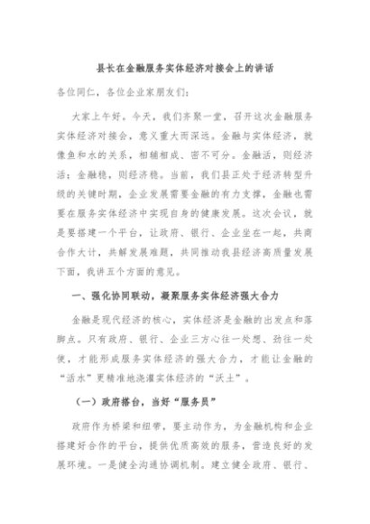 / 【七哥公文】2025年:县长在金融服务实体经济对接会上的讲话+更多免费公文+VX:QiGeGongWen2024