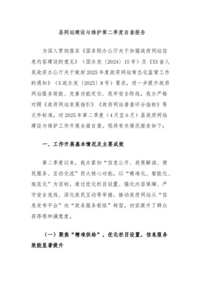 / 【七哥公文】2025年:县网站建设与维护第二季度自查报告+更多免费公文+VX:QiGeGongWen2024