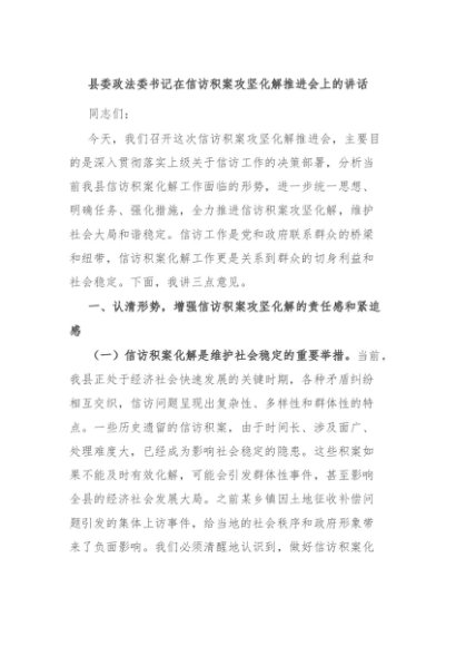/ 【七哥公文】2025年:县委政法委书记在信访积案攻坚化解推进会上的讲话+更多免费公文+VX:QiGeGongWen2024