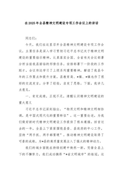 / 【七哥公文】2025年:在2025年全县精神文明建设专项工作会议上的讲话+更多免费公文+VX:QiGeGongWen2024