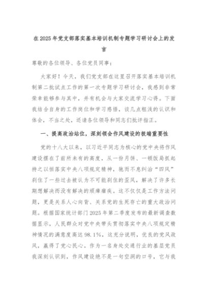 【七哥公文】2025年:在2025年党支部落实基本培训机制专题学习研讨会上的发言+更多免费公文+VX:QiGeGongWen2024