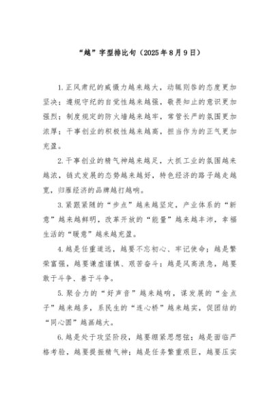 / 【七哥公文】2025年:“越”字型排比句(2025年8月9日)+更多免费公文+VX:QiGeGongWen2024