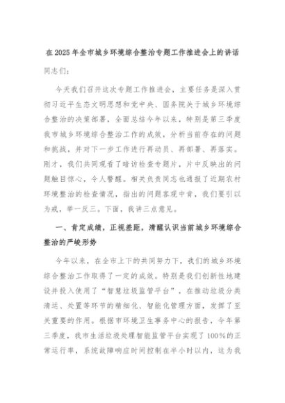 【七哥公文】2025年:在2025年全市城乡环境综合整治专题工作推进会上的讲话+更多免费公文+VX:QiGeGongWen2024