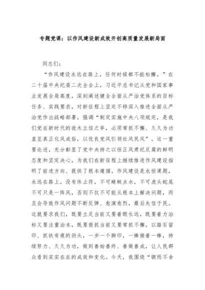 / 【七哥公文】2025年:专题党课:以作风建设新成效开创高质量发展新局面+更多免费公文+VX:QiGeGongWen2024