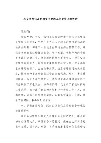 / 【七哥公文】2025年:在全市危化品运输安全管理工作会议上的讲话+更多免费公文+VX:QiGeGongWen2024