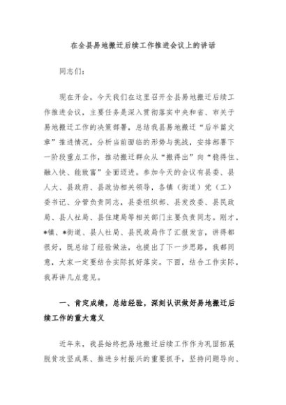 / 【七哥公文】2025年:在全县易地搬迁后续工作推进会议上的讲话+更多免费公文+VX:QiGeGongWen2024