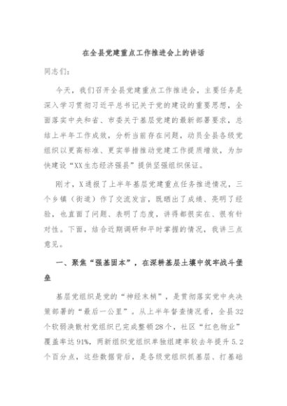 / 【七哥公文】2025年:在全县党建重点工作推进会上的讲话+更多免费公文+VX:QiGeGongWen2024