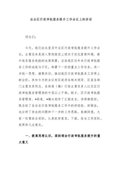 / 【七哥公文】2025年:在全区行政审批服务提升工作会议上的讲话+更多免费公文+VX:QiGeGongWen2024
