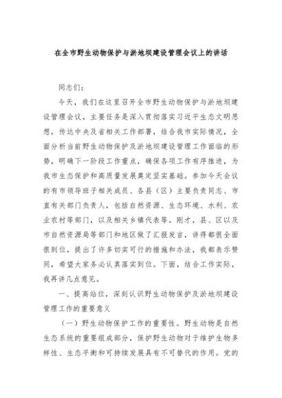 / 【七哥公文】2025年:在全市野生动物保护与淤地坝建设管理会议上的讲话+更多免费公文+VX:QiGeGongWen2024