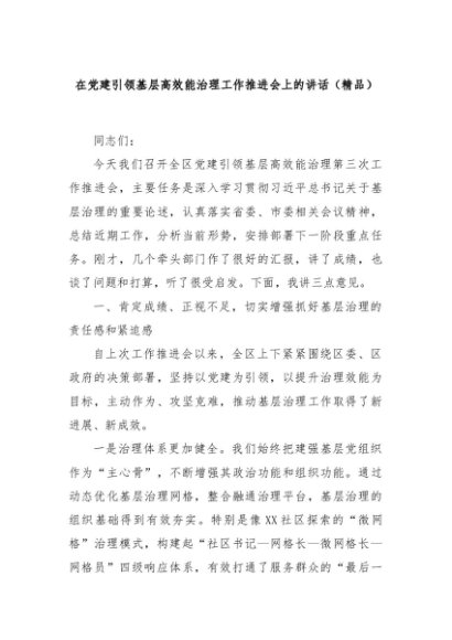 【七哥公文】2025年:在党建引领基层高效能治理工作推进会上的讲话(精品)+更多免费公文+VX:QiGeGongWen2024