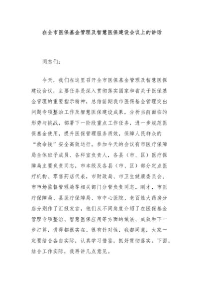 / 【七哥公文】2025年:在全市医保基金管理及智慧医保建设会议上的讲话+更多免费公文+VX:QiGeGongWen2024