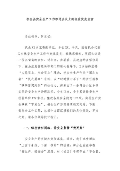 / 【七哥公文】2025年:在全县安全生产工作推进会议上的经验交流发言+更多免费公文+VX:QiGeGongWen2024