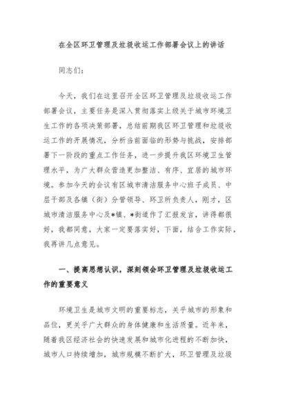 / 【七哥公文】2025年:在全区环卫管理及垃圾收运工作部署会议上的讲话+更多免费公文+VX:QiGeGongWen2024