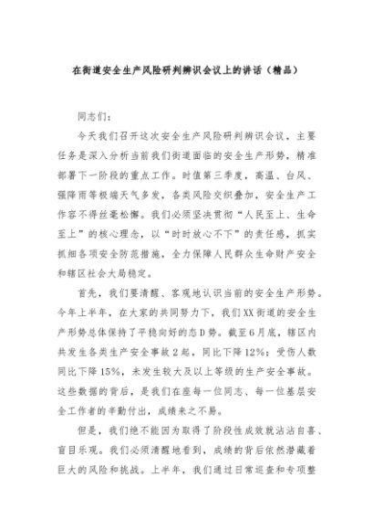 / 【七哥公文】2025年:在街道安全生产风险研判辨识会议上的讲话(精品)+更多免费公文+VX:QiGeGongWen2024