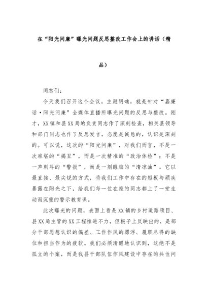 【七哥公文】2025年:在“阳光问廉”曝光问题反思整改工作会上的讲话(精品)+更多免费公文+VX:QiGeGongWen2024