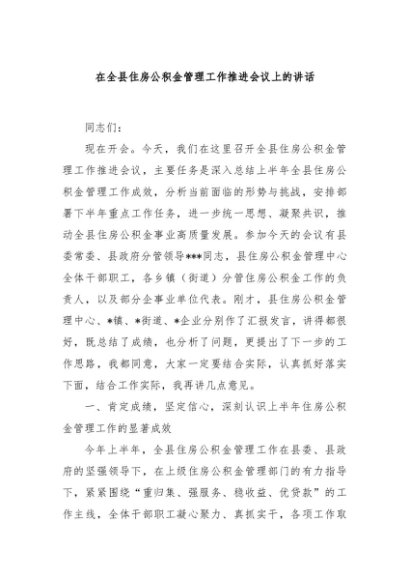 / 【七哥公文】2025年:在全县住房公积金管理工作推进会议上的讲话+更多免费公文+VX:QiGeGongWen2024