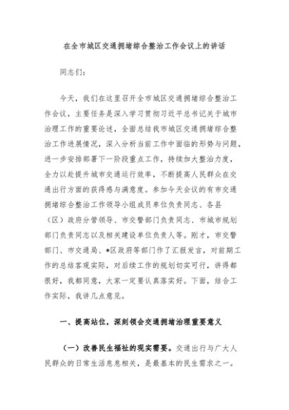 / 【七哥公文】2025年:在全市城区交通拥堵综合整治工作会议上的讲话+更多免费公文+VX:QiGeGongWen2024