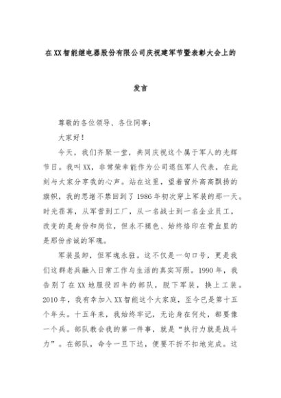 【七哥公文】2025年:在XX智能继电器股份有限公司庆祝建军节暨表彰大会上的发言+更多免费公文+VX:QiGeGongWen2024