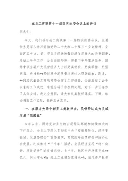 / 【七哥公文】2025年:在县工商联第十一届四次执委会议上的讲话+更多免费公文+VX:QiGeGongWen2024