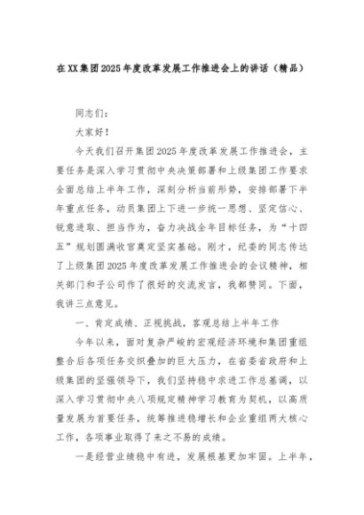 【七哥公文】2025年:在XX集团2025年度改革发展工作推进会上的讲话(精品)+更多免费公文+VX:QiGeGongWen2024