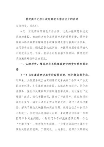 / 【七哥公文】2025年:县纪委书记在区政府廉政工作会议上的讲话+更多免费公文+VX:QiGeGongWen2024