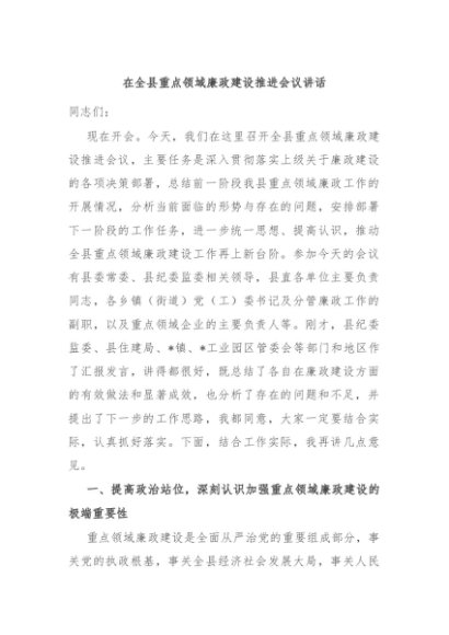 / 【七哥公文】2025年:在全县重点领域廉政建设推进会议讲话+更多免费公文+VX:QiGeGongWen2024