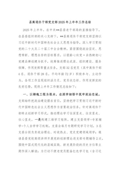 / 【七哥公文】2025年:县离退休干部党支部2025年上半年工作总结+更多免费公文+VX:QiGeGongWen2024