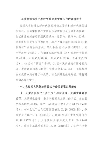 / 【七哥公文】2025年:县委组织部关于农村党员分类管理工作的调研报告+更多免费公文+VX:QiGeGongWen2024
