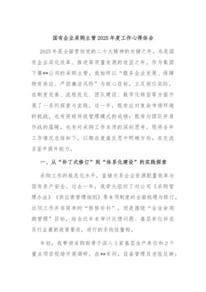 / 【七哥公文】2025年:国有企业采购主管2025年度工作心得体会+更多免费公文+VX:QiGeGongWen2024
