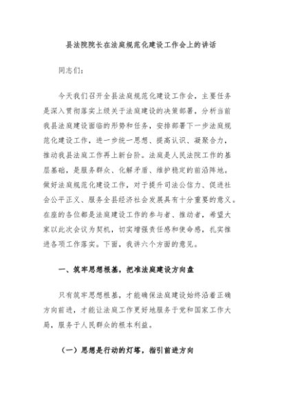 / 【七哥公文】2025年:县法院院长在法庭规范化建设工作会上的讲话+更多免费公文+VX:QiGeGongWen2024