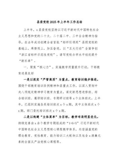 / 【七哥公文】2025年:县委党校2025年上半年工作总结+更多免费公文+VX:QiGeGongWen2024