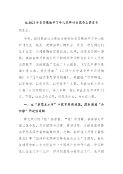/ 【七哥公文】2025年:在2025年县委理论学习中心组研讨交流会上的发言+更多免费公文+VX:QiGeGongWen2024