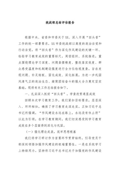 【七哥公文】2025年:统战部总结评估报告+更多免费公文+VX:QiGeGongWen2024
