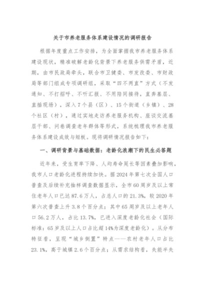 / 【七哥公文】2025年:关于市养老服务体系建设情况的调研报告+更多免费公文+VX:QiGeGongWen2024
