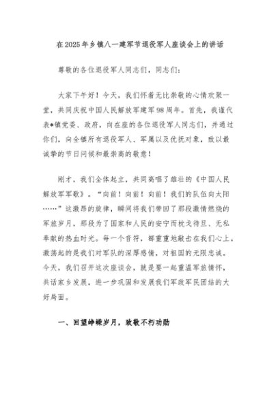 / 【七哥公文】2025年:在2025年乡镇八一建军节退役军人座谈会上的讲话+更多免费公文+VX:QiGeGongWen2024