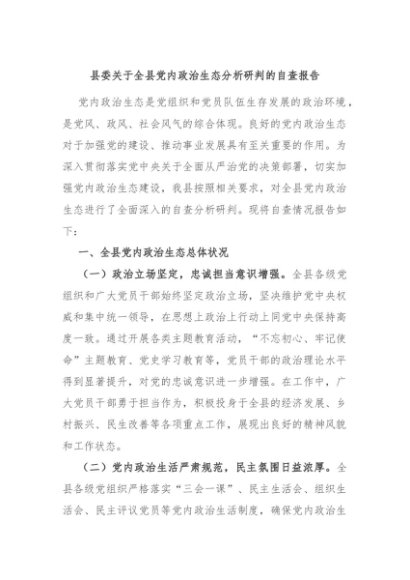 / 【七哥公文】2025年:县委关于全县党内政治生态分析研判的自查报告+更多免费公文+VX:QiGeGongWen2024